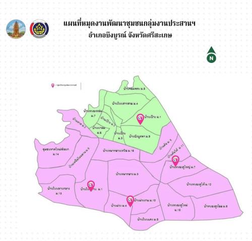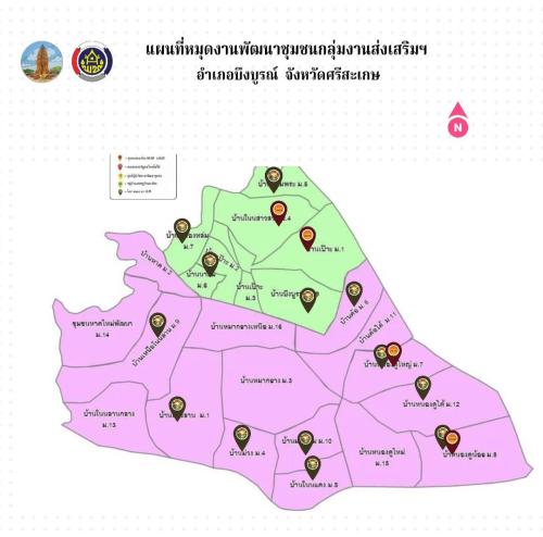 แผนที่หมุดงานพัฒนาชุมชนอำเภอบึงบูรพ์ จังหวัดศรีสะเกษ